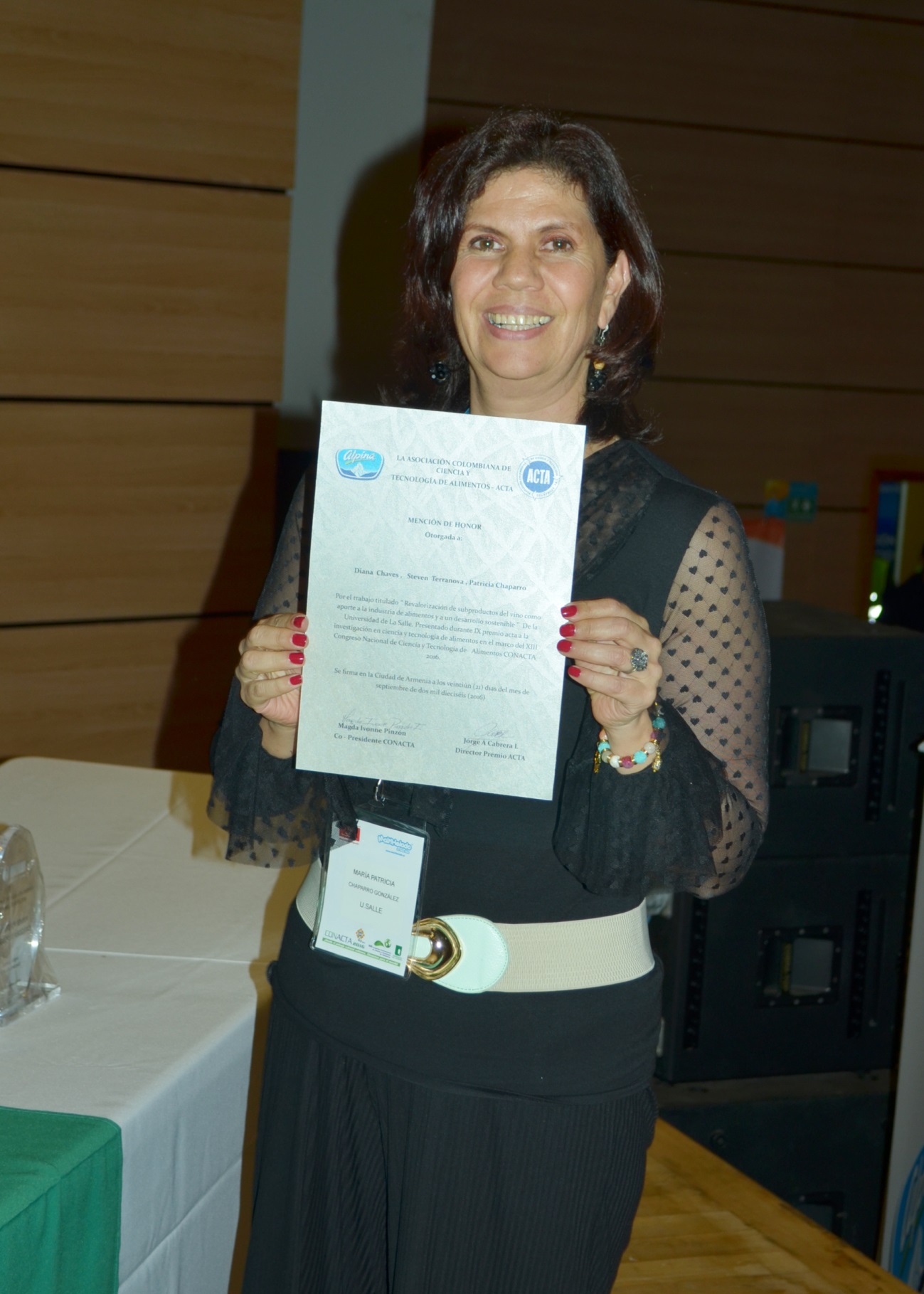 Patricia Chaparro  de la Universidad de La Salle , recibió la  Mención de Honor otorgada por el trabajo  titulado “ Revalorización de subproductos del  vino como aporte a la industria de alimentos y a un desarrollo sostenible”